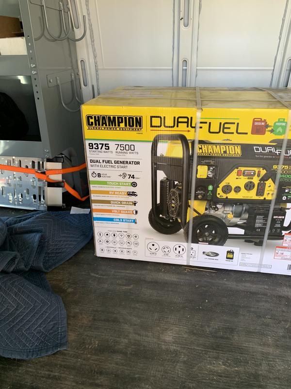 If we talk about its power output, then it generates 9375 starting and 7500 running watts on gasoline and 8400 starting. On propane, it produces 8400 starting watts and 6750 running watts. Page 1 owner's manual & operating instructions frame type electric start dual fuel generator u.s. Fitted with a standard 30a rv outlet, it can easily start and run your 15,000 btu rv air conditioner. For your caravan, home, building site, projects and more, count on champion to power your world. Champion 7500 watt dual fuel portable generator. At 9375 starting watts and 7500 running watts, enjoy up to 8 hours of run time on a full tank of gasoline with a noise level of 74 dba from 23 feet. From 2000 watts to 8,000 watts, the champion brand has the perfect portable generator to fit your needs. With a dry weight of 199.1 pounds, the champion 100538 finds itself in the expected weight range for generators able to produce between 7000 and 8000 rated watts. The champion 7500w dual fuel portable generator uses either propane or gasoline, it is recommended for power outages, it is a good generator at a good price (buy on amazon). Trust the reliable 420cc champion. Best portable generators based on noise, customer support; I believe you're searching for champion 7500 watt generator.